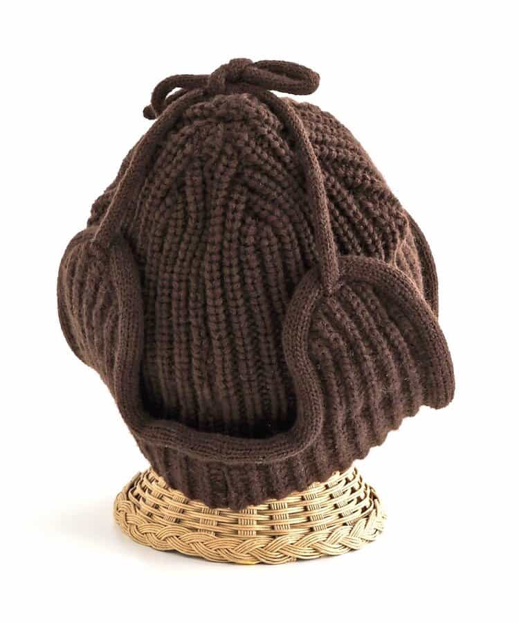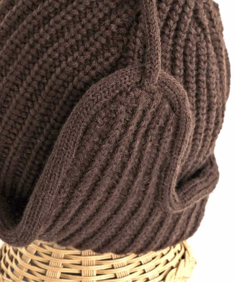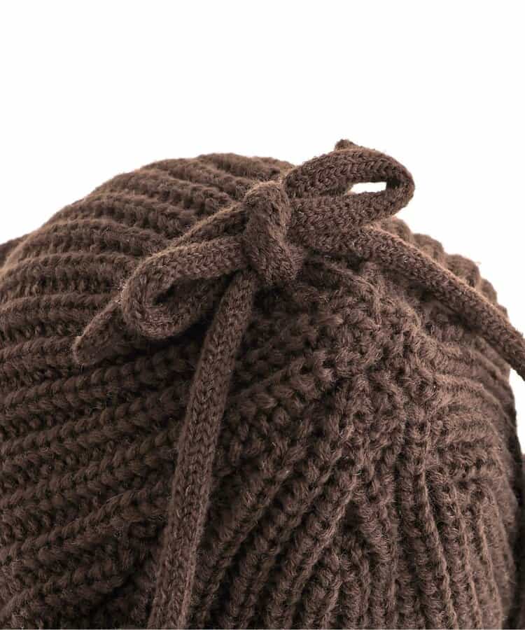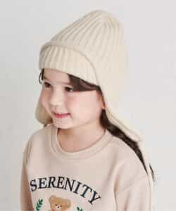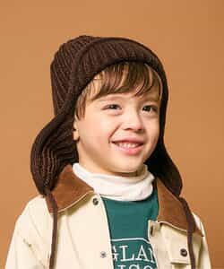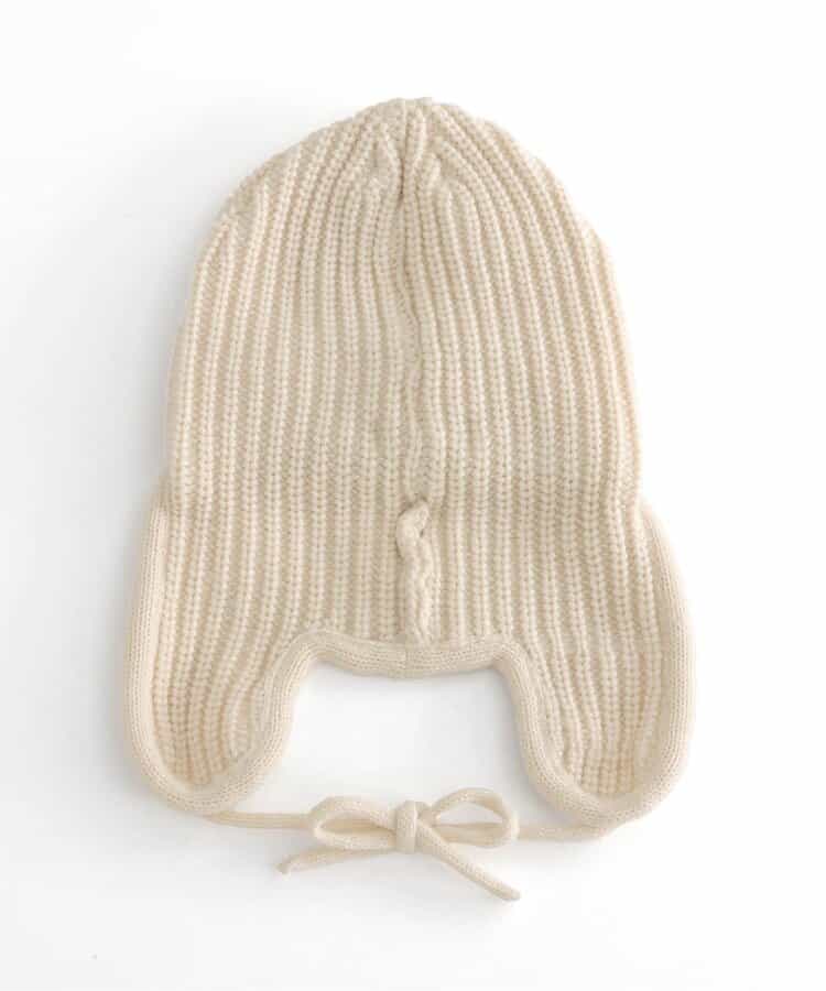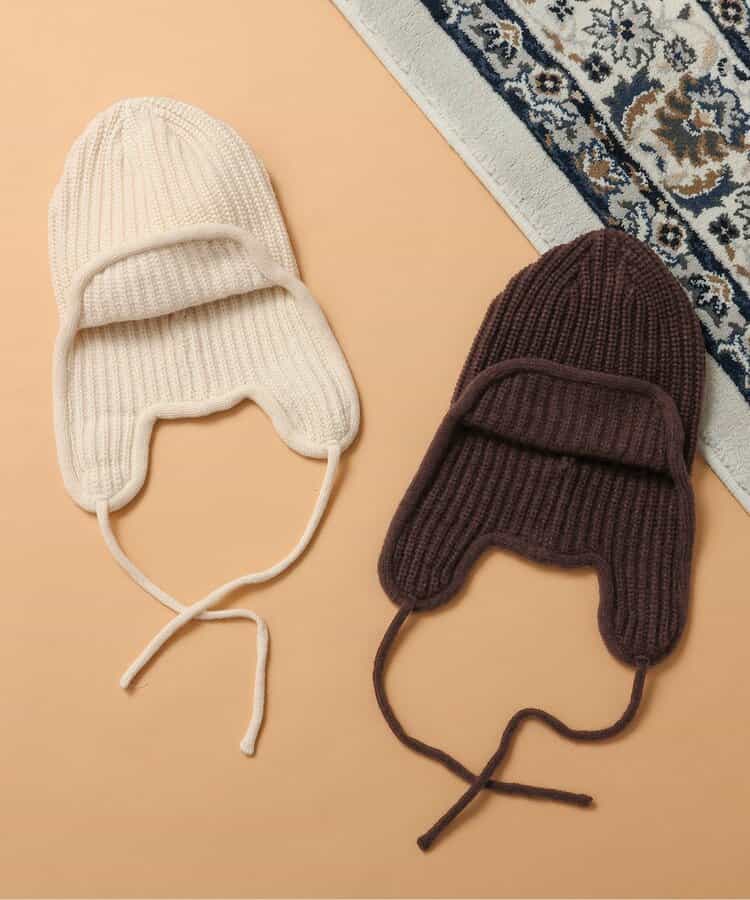 オシャレであたたかい!!耳当て付きのフライトキャップ*耳当てを上げて頭頂部で紐を結ぶとお洒落さん!耳当てを降ろしてあご紐を結ぶと暖かい♪色んな被り方が出来るニット帽です。優しいカラーのアイボリーとブラウンの2色展開*