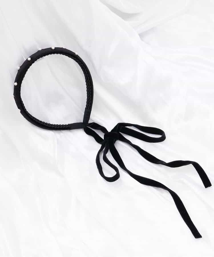 apres les cours(アプレレクール)のアクセサリー「リボン付きベロアカチューシャ」は、どんなウェアとも相性抜群!おしゃれなコーデに仕上げてくれるアイテム*