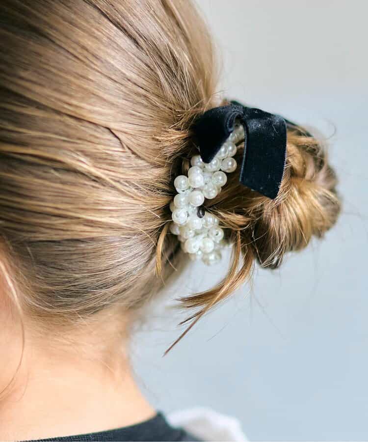 apres les cours(アプレレクール)のアクセサリー「リボンシュシュ」は、どんなウェアとも相性抜群!おしゃれなコーデに仕上げてくれるアイテム*