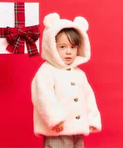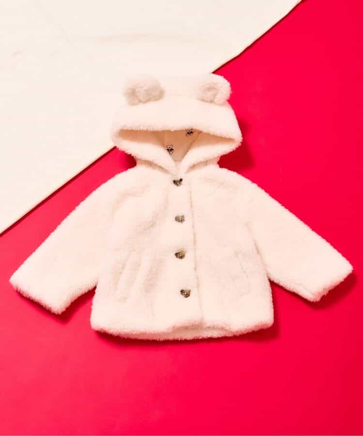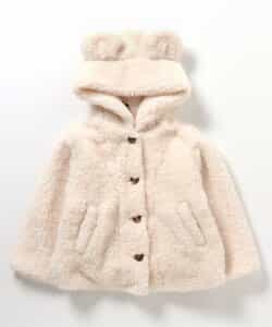 ふわふわのボア素材に、くま耳付きのフードがとってもキュートなアウター。