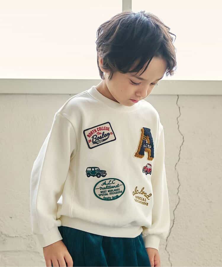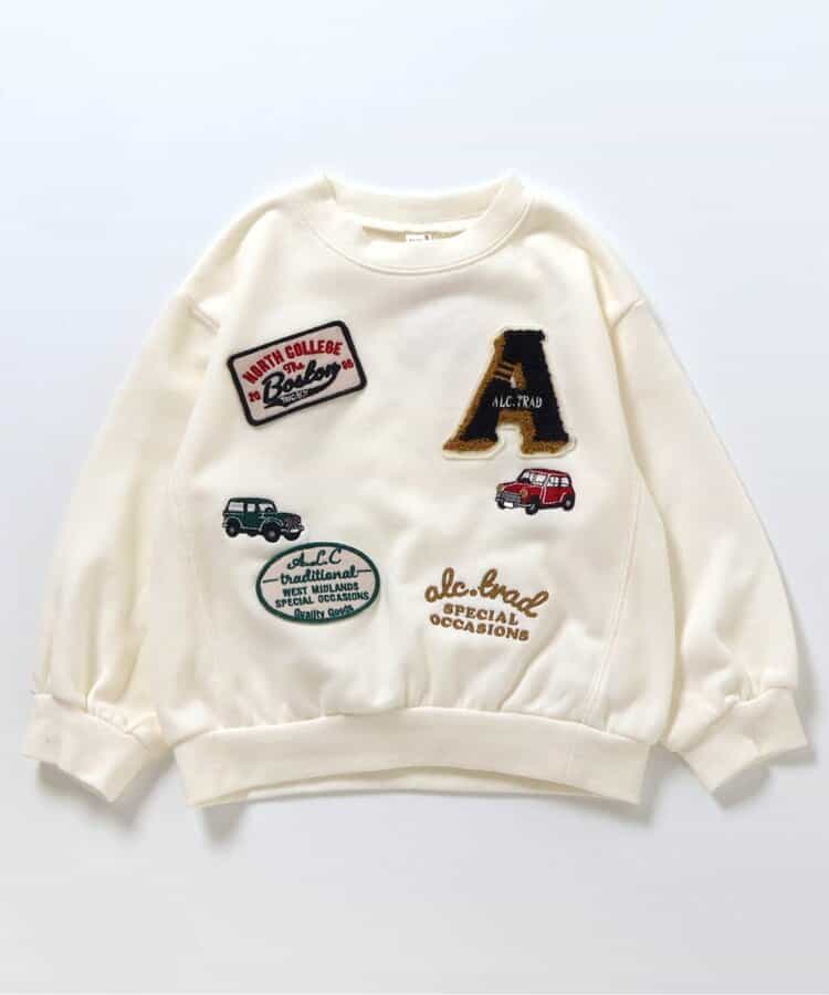 apres les cours(アプレレクール)のトレーナー「アソートワッペン&刺繍トレーナー」は、ナチュラルなスタイルにさりげなくデザインをプラスしたおしゃれアイテム*
