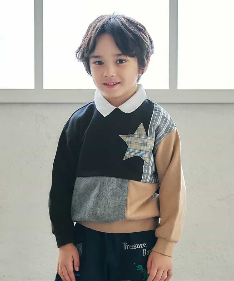 【10/15(水)21:00~販売】apres les cours(アプレレクール)のトレーナー「襟付きスターパッチトレーナー」は、ナチュラルなスタイルにさりげなくデザインをプラスしたおしゃれアイテム*