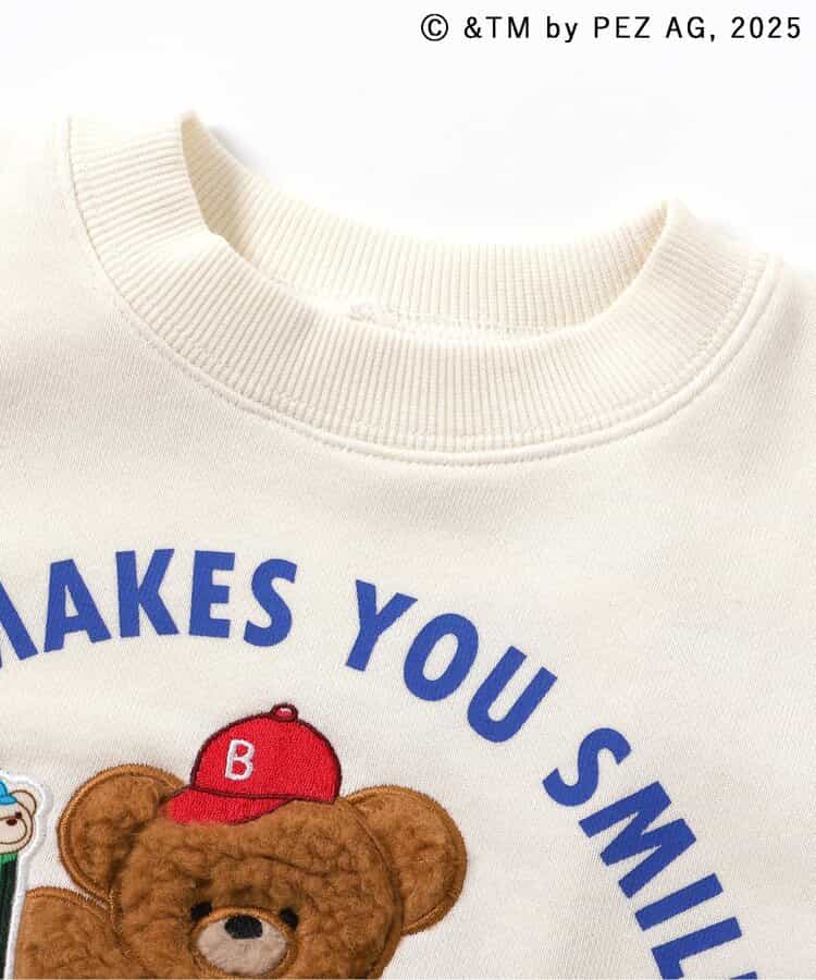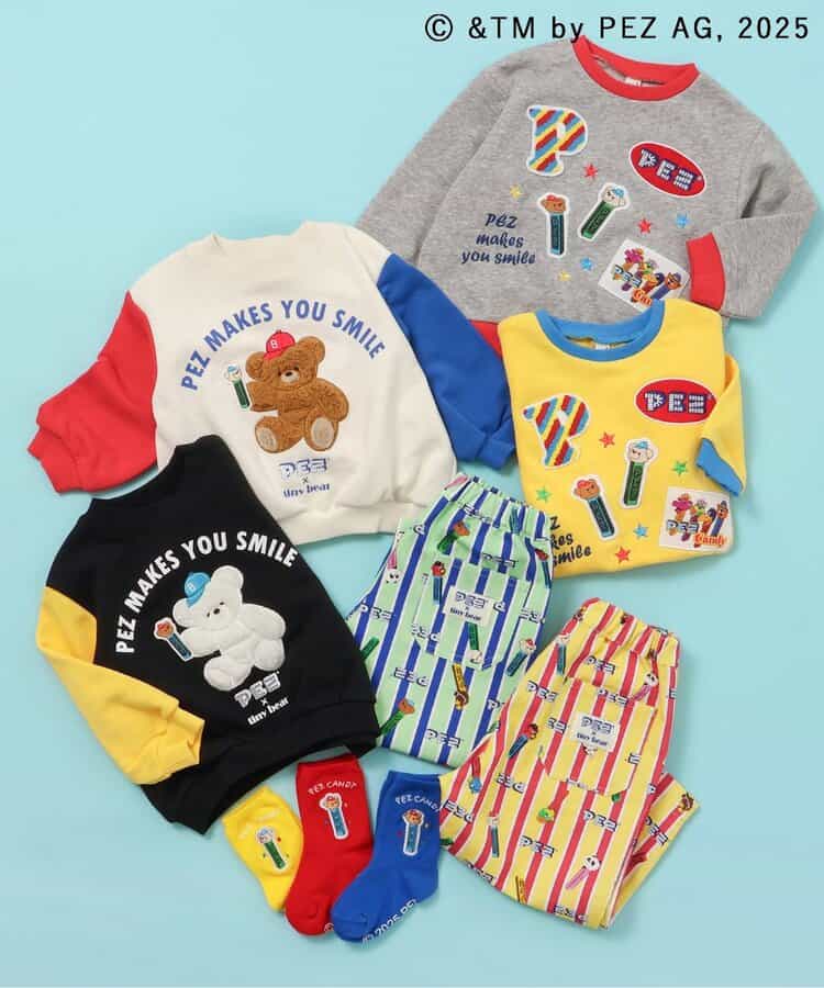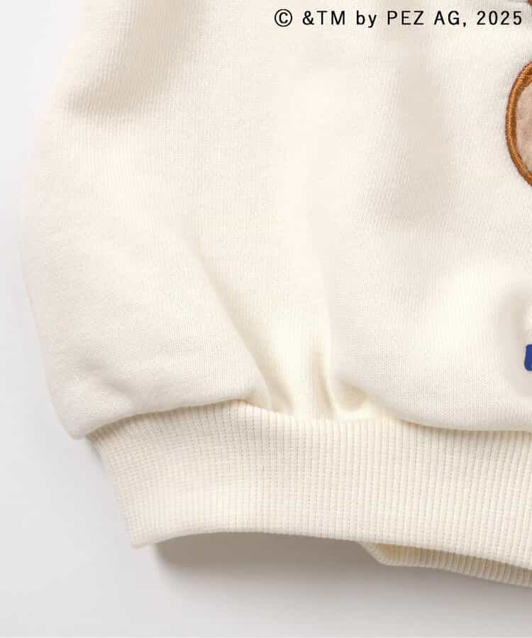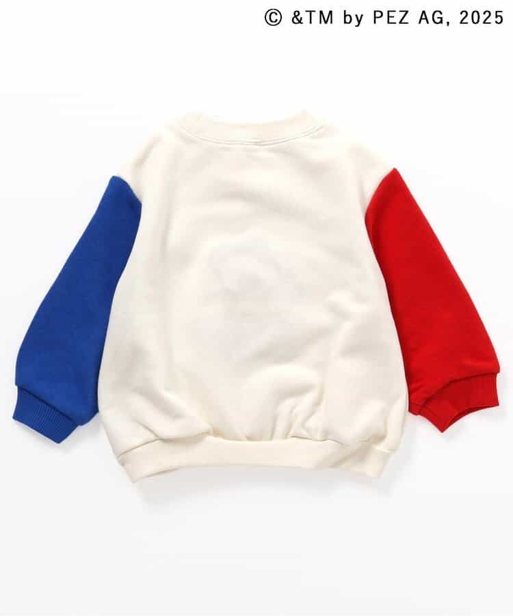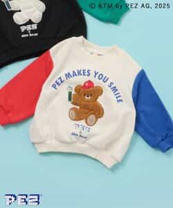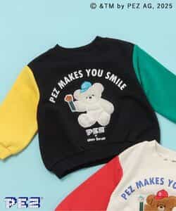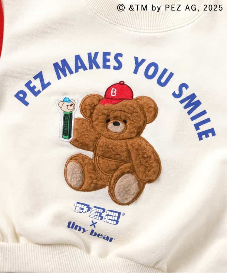 【12/10(水)お昼12時~発売予定】 ※販売日は前後する場合がございます。 ≪子供服 apres les coursの「PEZ×tiny bear」コレクション≫ ポップでかわいいPEZとタイニーベアのスペシャルコラボ♪ タイニーベアがタイニーベアデザインのPEZをもったイラストはとってもキュート! 袖の配色もポイント! 裏毛トレーナーなので、インナーを変更すると長くご利用いただけます♪ きょうだいやお友だちとおそろいコーデもおすすめです◎