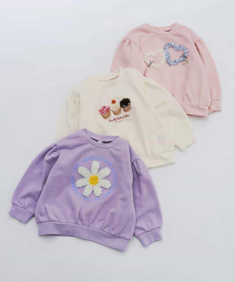 apres les cours(アプレレクール)のトレーナー「3柄GIRLS立体モチーフトレーナー」は、ナチュラルなスタイルにさりげなくデザインをプラスしたおしゃれアイテム*