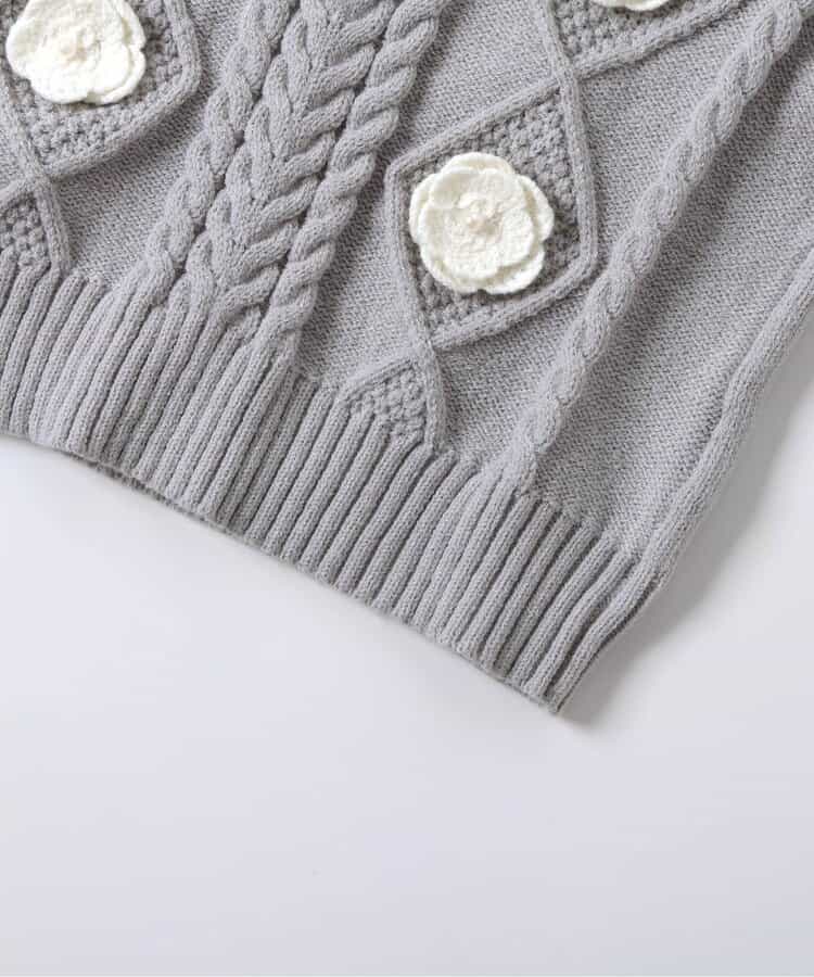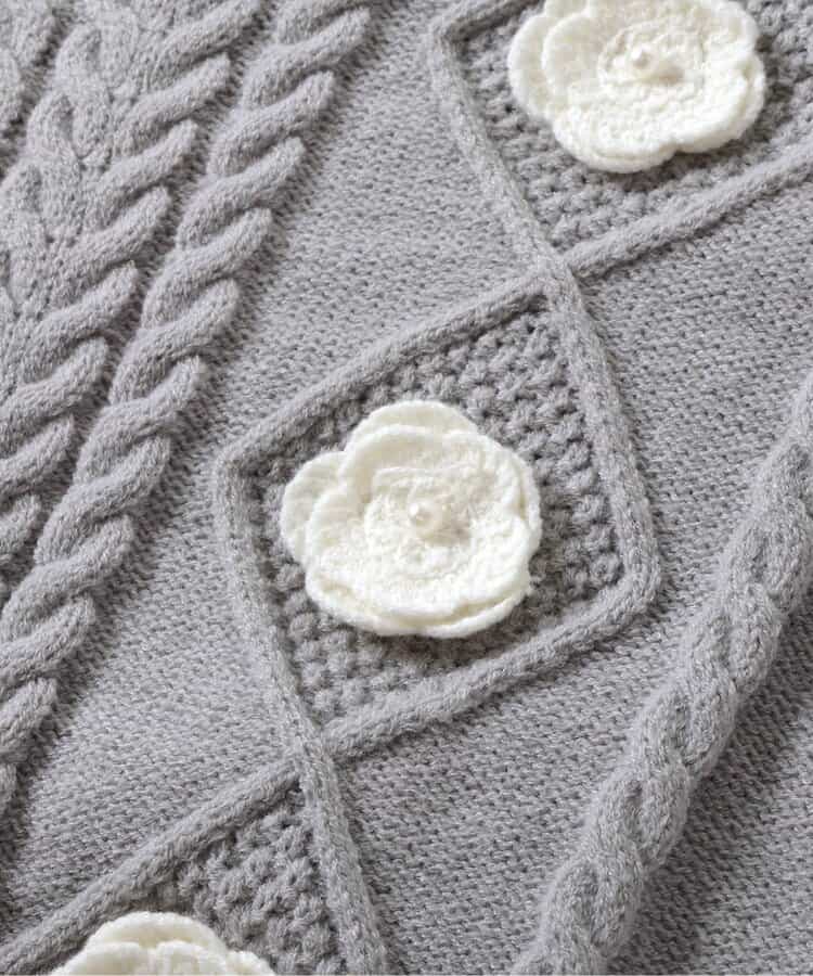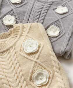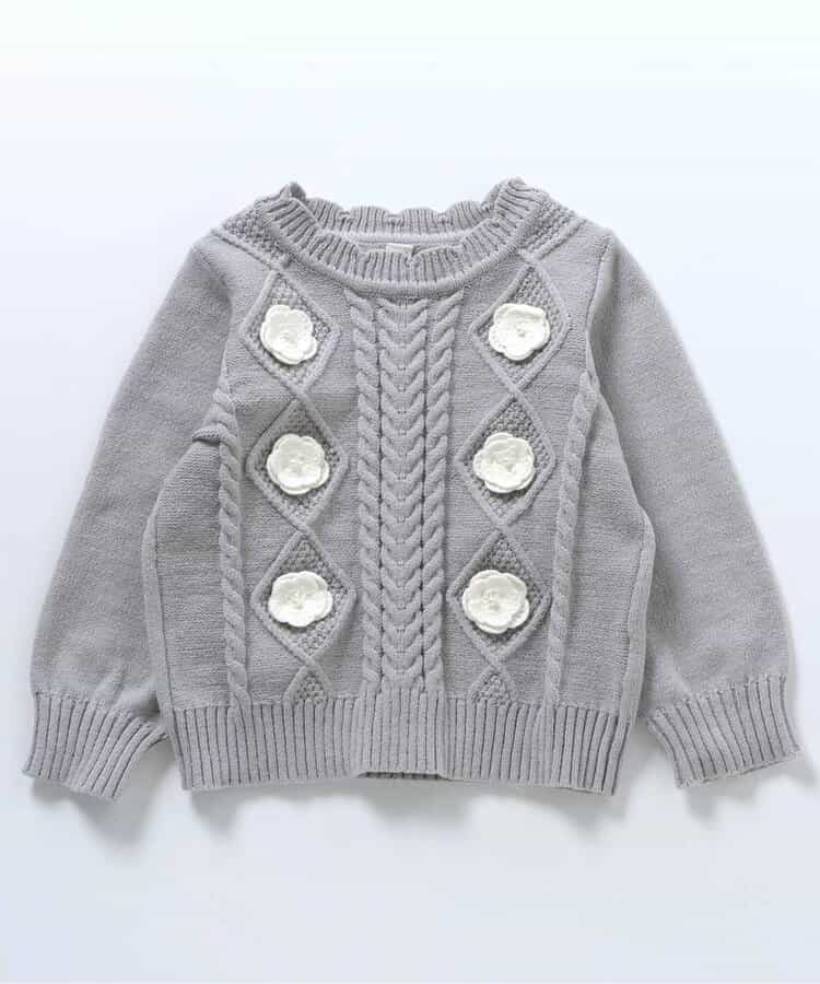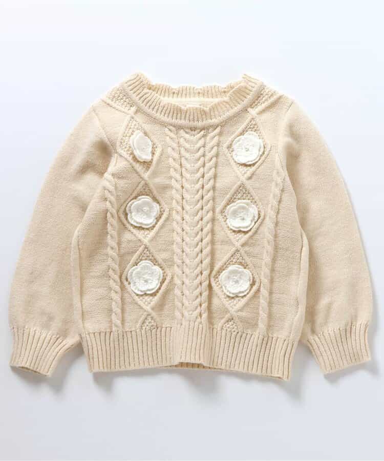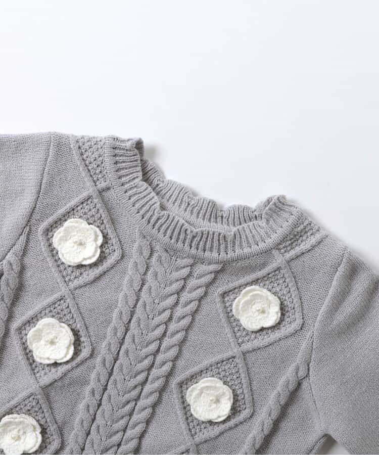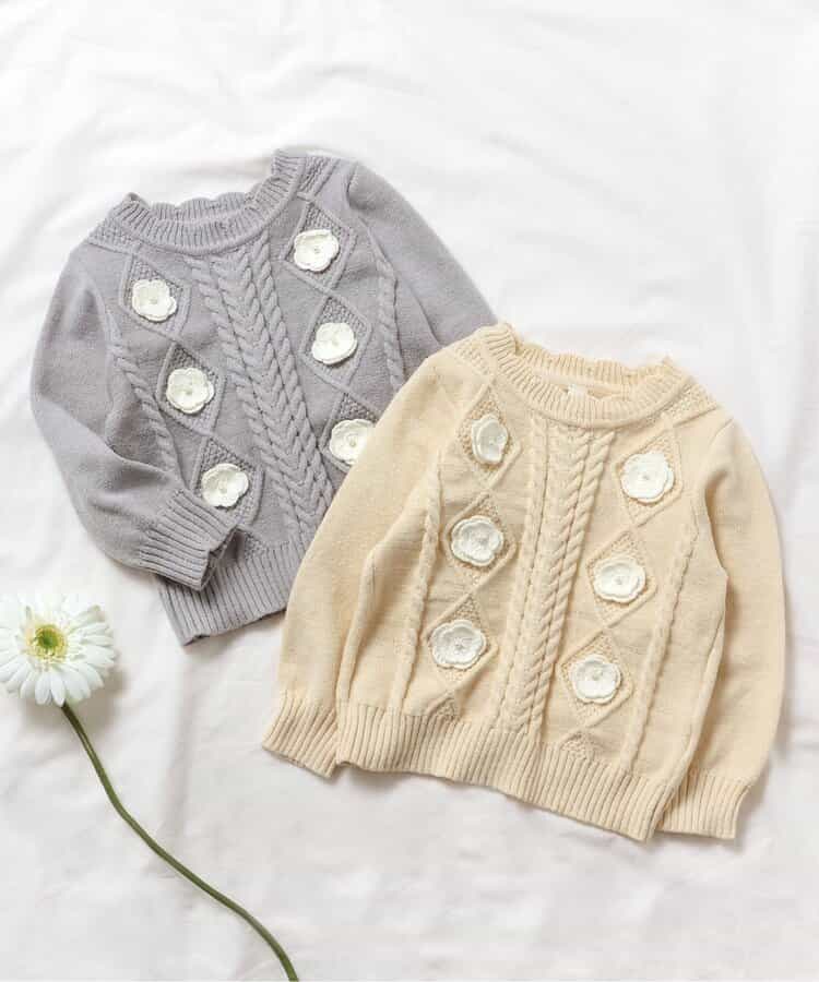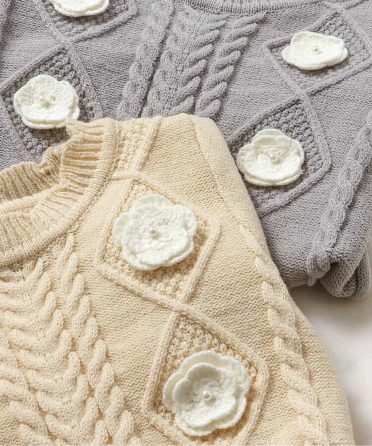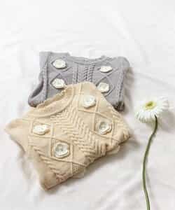 apres les cours(アプレレクール)のニット・セーター「フラワーモチーフニット_RP」は、ナチュラルなスタイルにさりげなくデザインをプラスしたおしゃれアイテム*