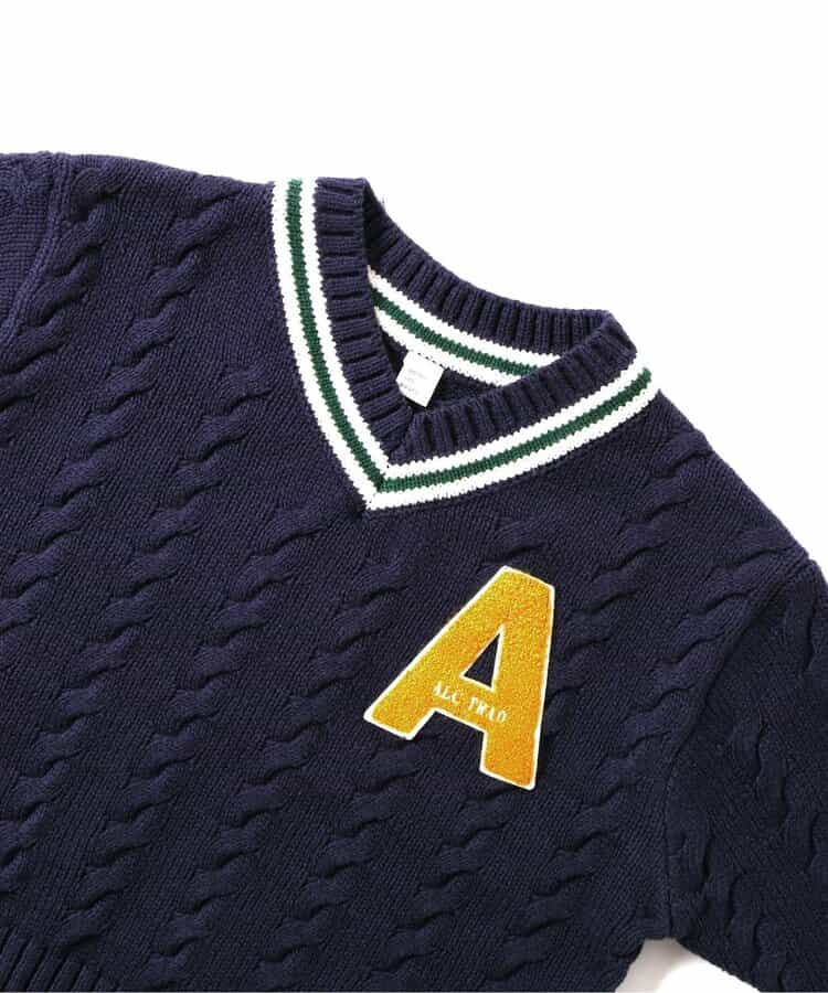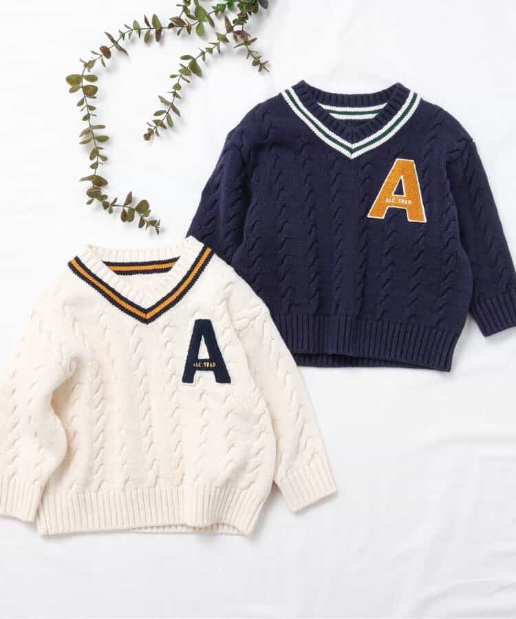 apres les cours(アプレレクール)のニット・セーター「アルファベットラインニット」は、ナチュラルなスタイルにさりげなくデザインをプラスしたおしゃれアイテム*