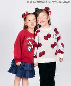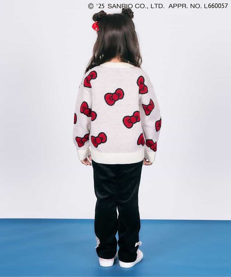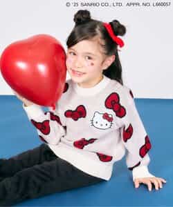 【12/15(月)お昼12時~発売予定】 ※販売日は前後する場合がございます。 ≪子供服 apres les coursの「ハローキティ」コレクション≫ リボンの総柄がとってもキュートなニットが登場♪ 1枚で存在感のあるデザインで注目の的に! シンプルなボトムを合わすだけでコーディネートが完成します。 胸元のキティちゃんのワンポイントにも注目! きょうだいやお友だちとおそろいコーデもおすすめです。「ハローキティ」コレクションはこちら>>