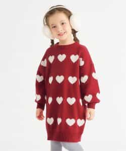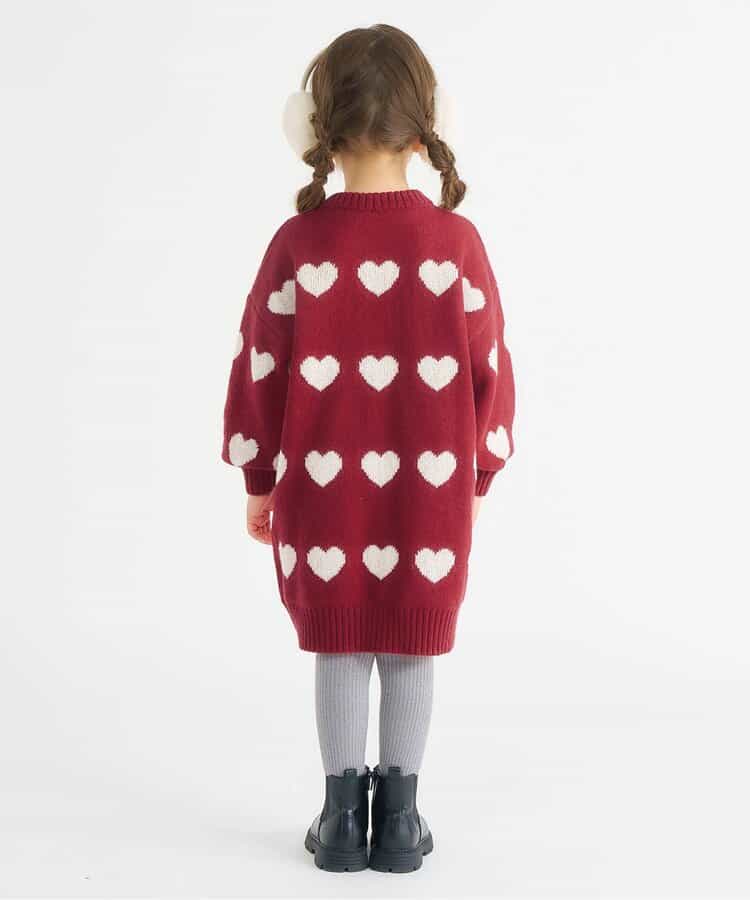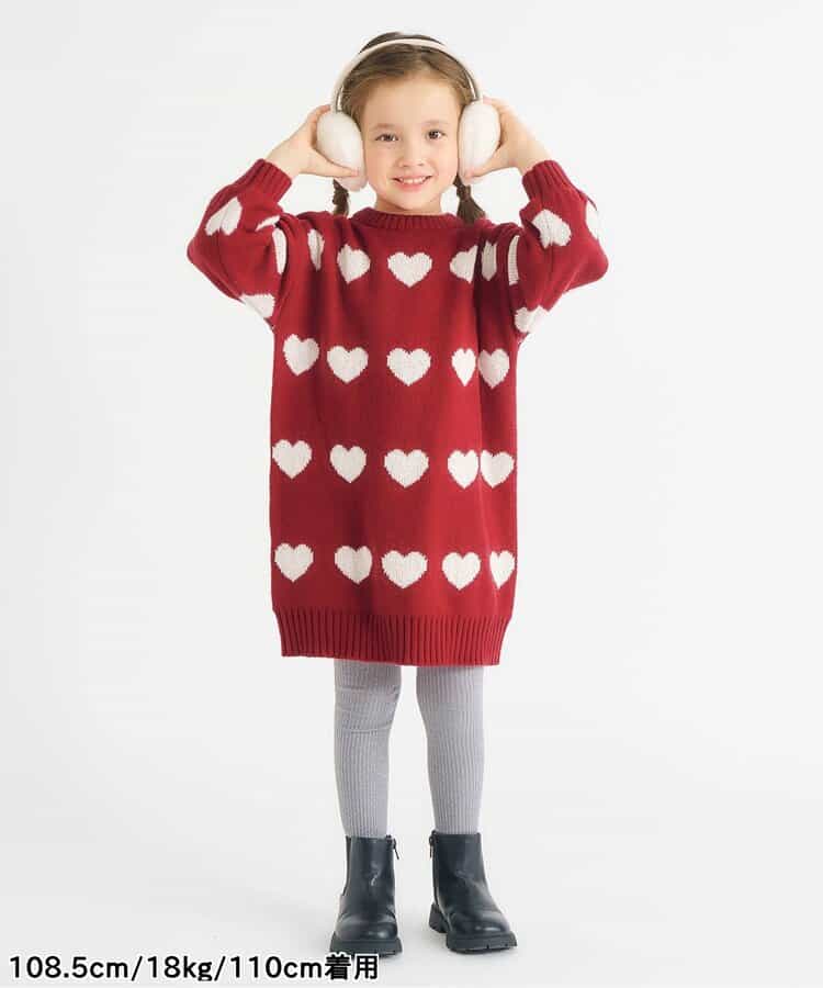 WEB限定 フラワー・ハートニットワンピース_マシンウォッシャブル