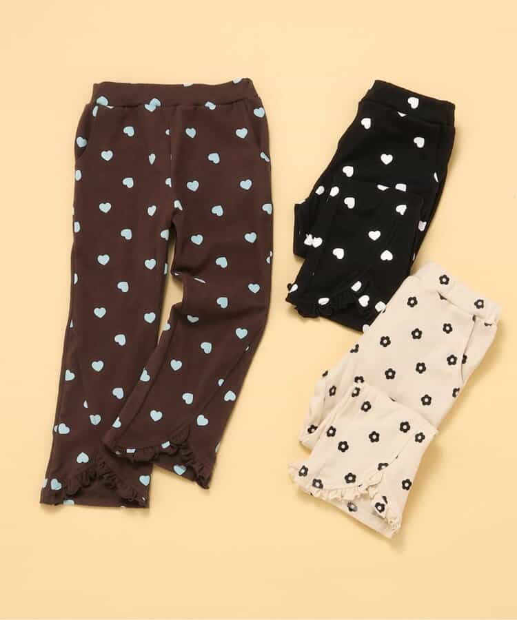 V520045 【総柄】ハート・花柄 裾フリルきゅんパンツ_ジュニア対応