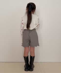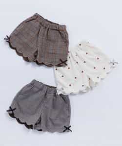 apres les cours(アプレレクール)のパンツ「【リンク】サイドリボンスカラップショートパンツ」は、ナチュラルなスタイルにさりげなくデザインをプラスしたおしゃれアイテム*