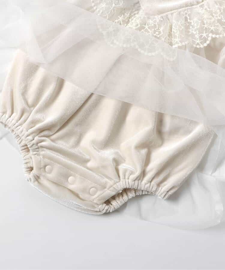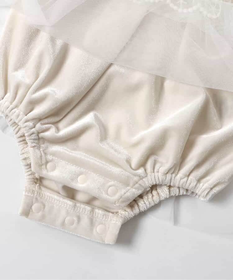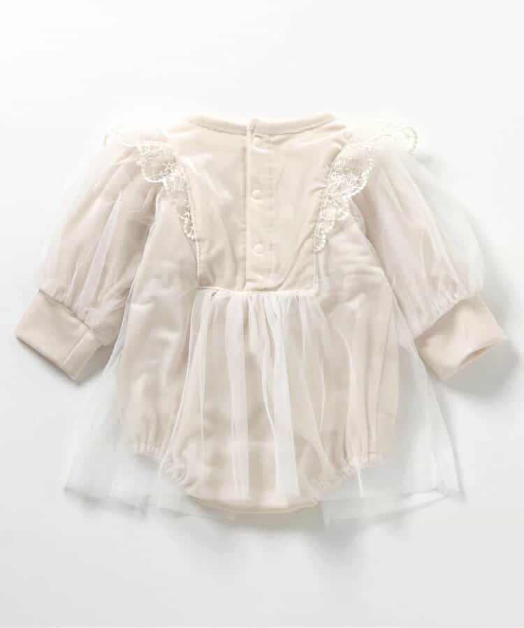 apres les cours(アプレレクール)のカバーオール・ロンパース「【リンク】ベロアチュールカバーオール_アプレレクールマシェリ」は、やさしいニュアンスのナチュラルなデザイン。ベビーギフトや出産祝いの主役にも♪