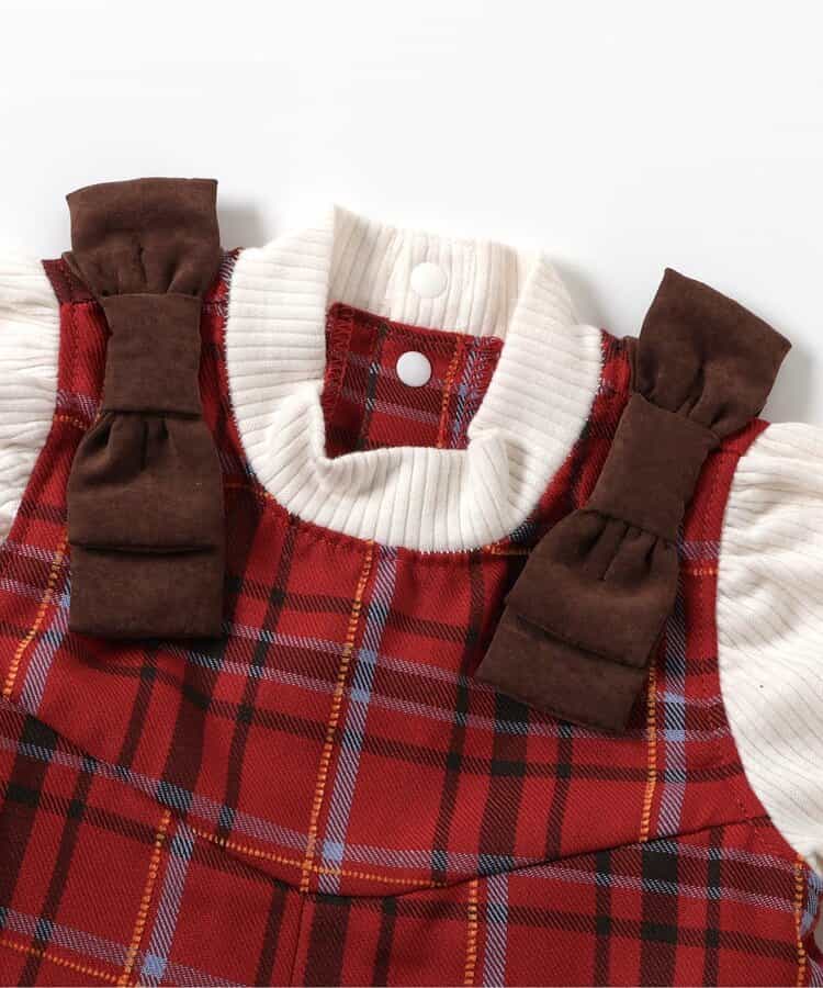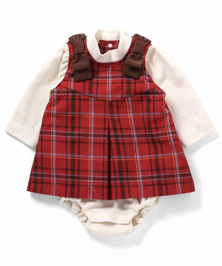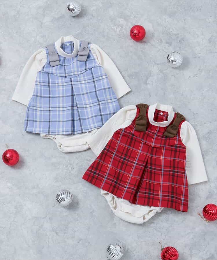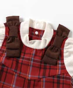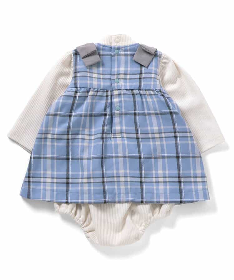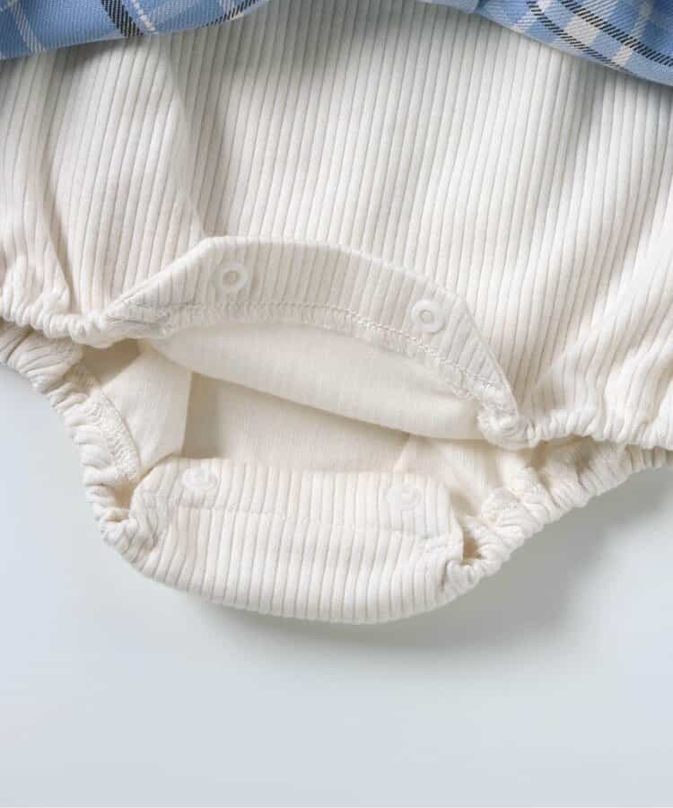 apres les cours(アプレレクール)のカバーオール・ロンパース「【リンク】肩リボンチェックカバーオール」は、やさしいニュアンスのナチュラルなデザイン。ベビーギフトや出産祝いの主役にも♪