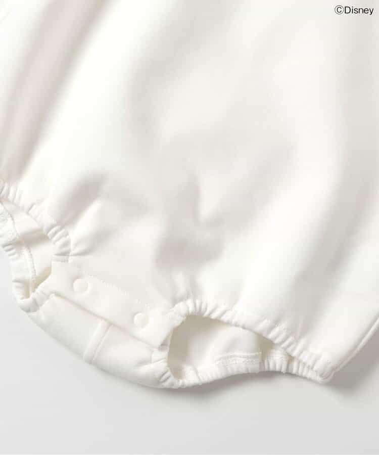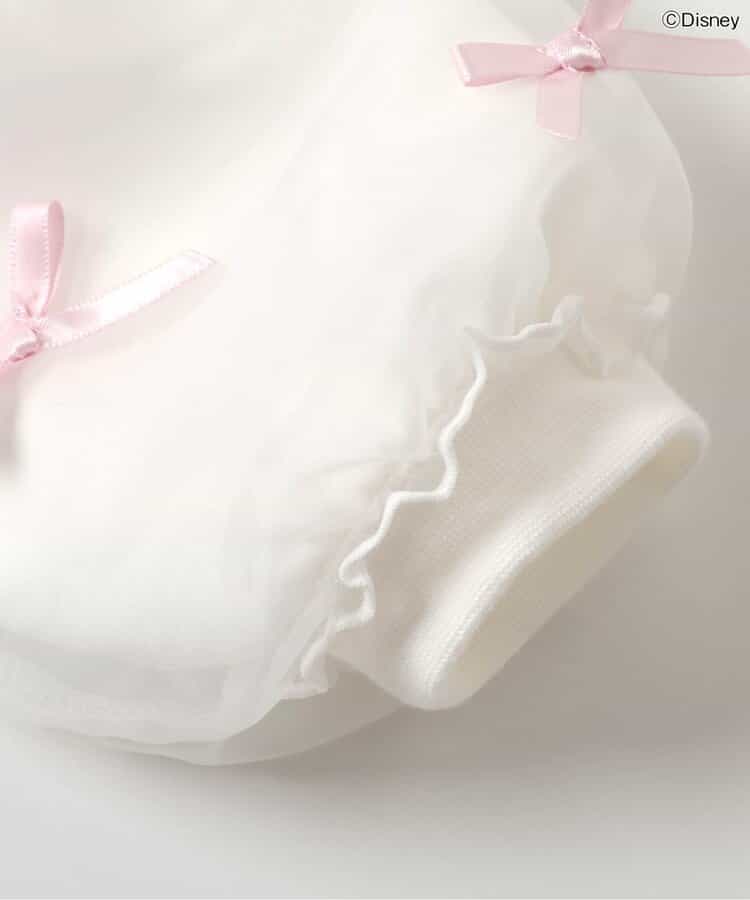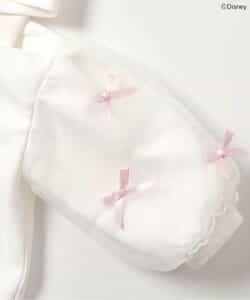 袖にはリボン刺繍が並び、赤ちゃんの可愛さを引き立てる華やかなディテールがポイント。