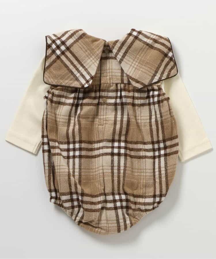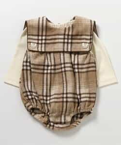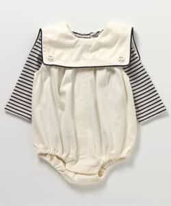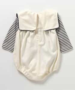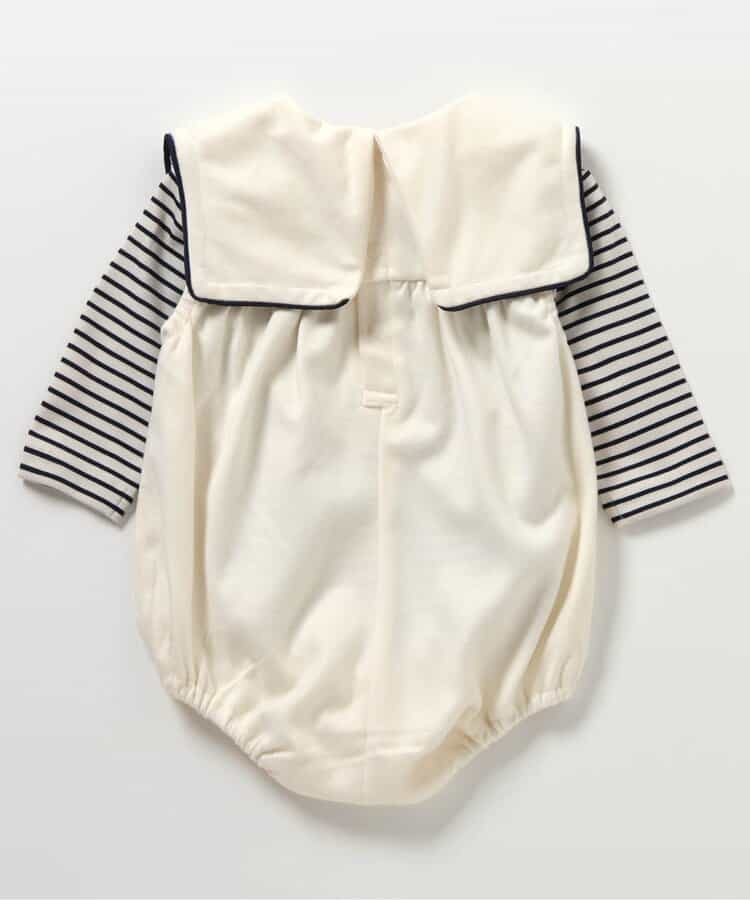 apres les cours(アプレレクール)の「セーラー衿サロペット+インナーセット」は、やさしいニュアンスのナチュラルなデザイン。ベビーギフトや出産祝いの主役にも♪