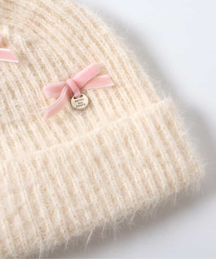 【10/20(月)21:00~販売】apres les cours(アプレレクール)の帽子「リボンベビーニット帽」は、どんなウェアとも相性抜群!おしゃれなコーデに仕上げてくれるアイテム!