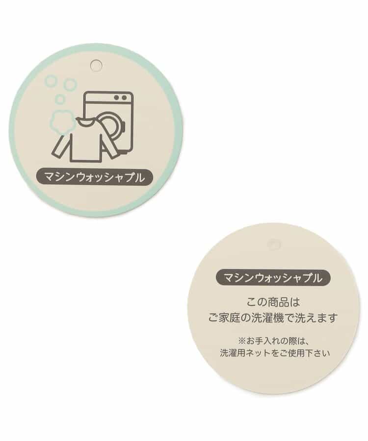40℃を上限に洗濯機で洗濯、デリケートアイテムモード、ネット使用、漂白剤禁止、色物は同系の色と一緒に、洗濯後直ちに取出し、タンブル乾燥不可、日陰で平干し、アイロン禁止、商業ドライクリーニング不可