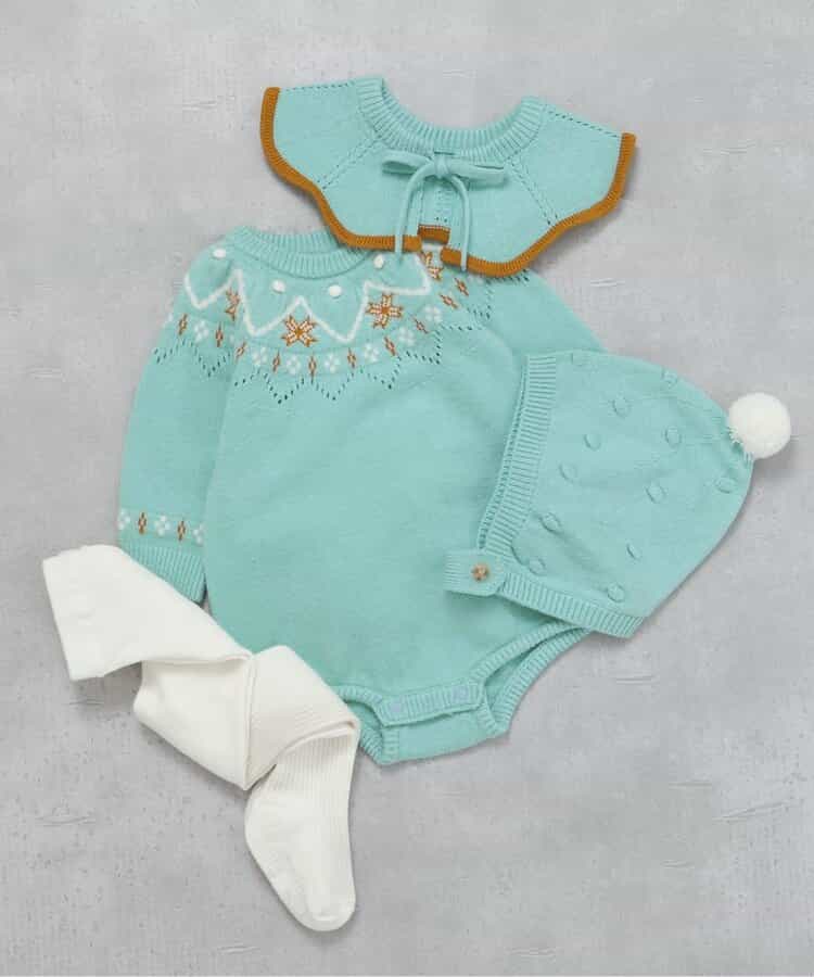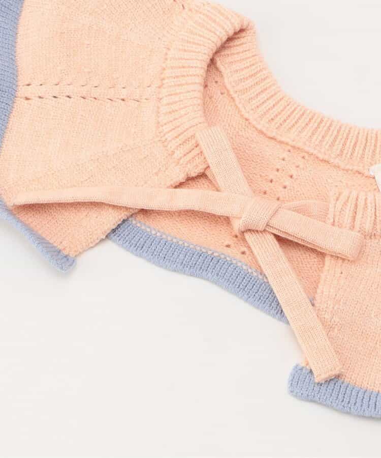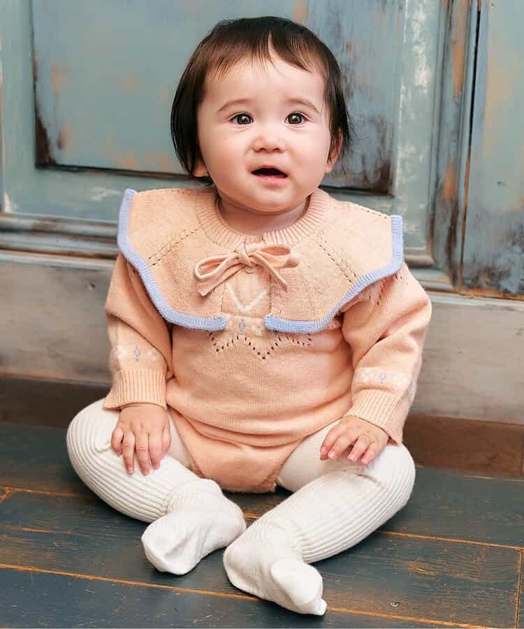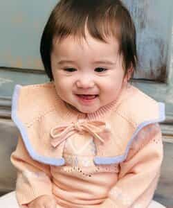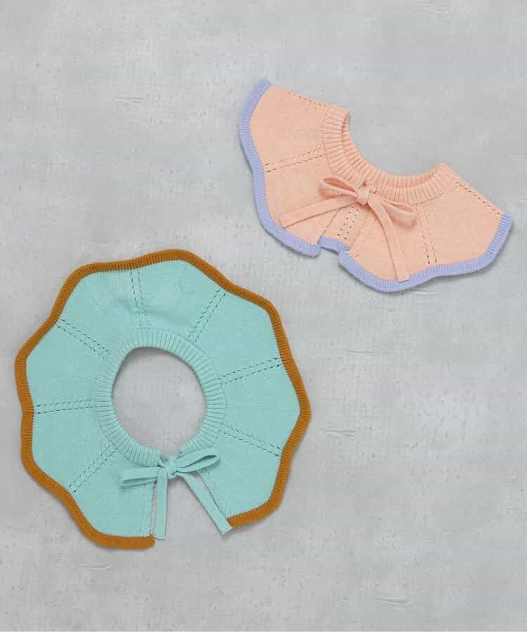 apres les cours(アプレレクール)のスタイ・エプロン「ニットベビーつけ衿」は、おようふくとのスタイリングも楽しめるデザインで、ベビーギフトや出産祝いにもおすすめ*