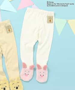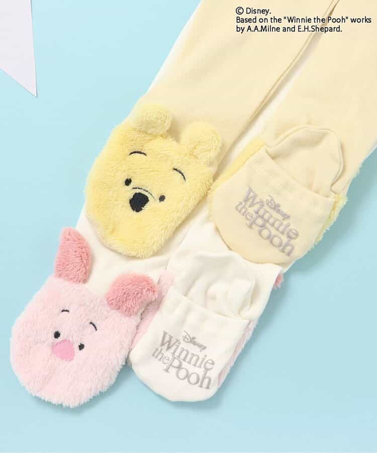 【10/9(木) お昼12:00~販売】≪子供服 apres les coursの『くまのプーさん』コレクション≫ディズニーの人気キャラクター「くまのプーさん」と「ピグレット」が、のベビータイツが登場!つま先部分に立体的な「プーさん」と「ピグレット」のモチーフがあしらわれていて、お座りの時やハイハイ中も、思わず目を引くキュートなデザインです。柔らかく伸びの良い素材で、赤ちゃんの動きを妨げず、やさしくフィット。お腹まですっぽり包むタイツタイプなので、冷えやすい季節にもぴったりです。また、足先を出せるような仕様になっているので、体温調節が苦手な赤ちゃんも快適に過ごしていただけます。ギフトにも嬉しい、特別感のあるアイテムです♪『くまのプーさん』コレクションはこちらディズニーコレクションはこちら