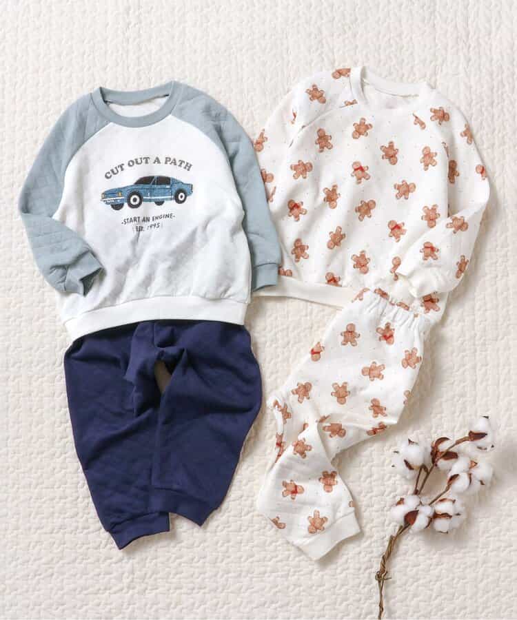 apres les cours(アプレレクール)のパジャマ「車・ジンジャークッキー柄キルトパジャマ」は、おうち時間が楽しく快適になるような着心地とデザイン。お気に入りデザインを選んで、おやすみタイムを過ごしましょう*