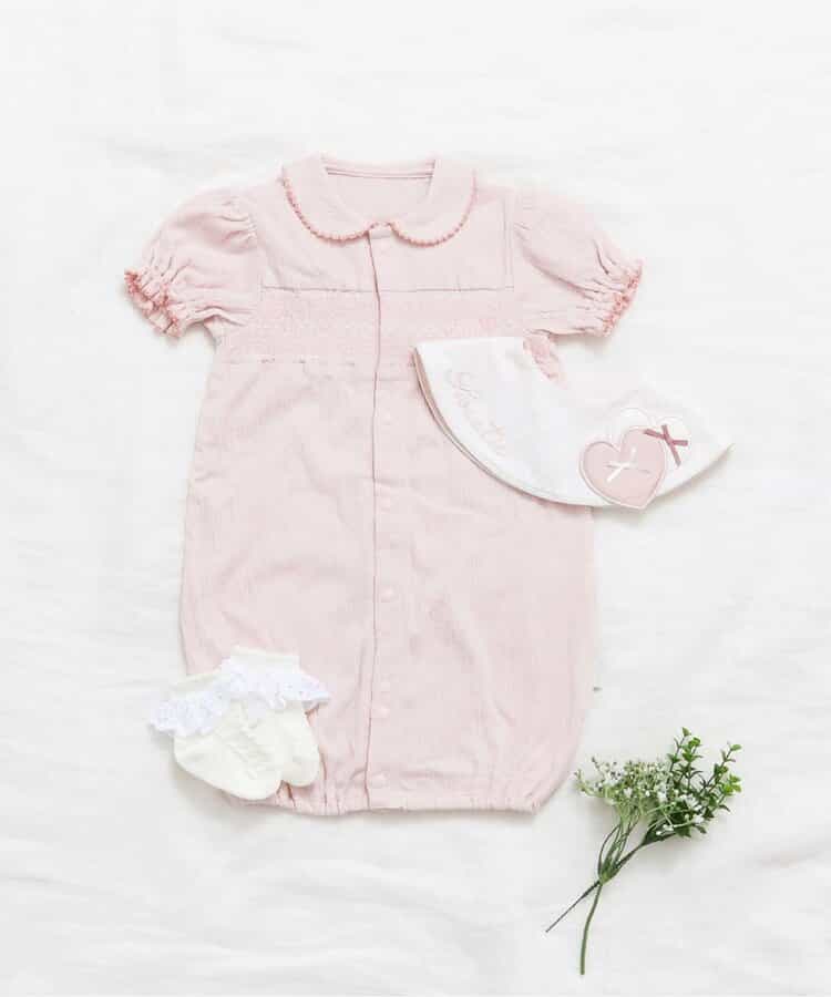 ≪アプレ レ クールのベビーギフトセット≫ \出産祝いにおすすめ!アプレのギフトコレクション/【0ヵ月~6ヵ月(50~70㎝)対象】 2WAYオールは、胸元のハート刺繍がポイント。 はじめはベビードレスとして。赤ちゃんの動きが活発になってきたらロンパースとして着用可能です。 柔らかい素材で、赤ちゃんのお肌をやさしく包みます。 ハートのスタイとフリル付きベビーソックスもコーデのおしゃれポイントに♪出産祝いにおすすめです。 ≪セット内容≫ ・ハートスモッキング刺繍2wayオール:50~70cm(生後~12ヵ月) ・ハートアップリケスタイ:70~90cm(生後~2才ごろ) ・レースフリルベビーソックス:7~9cm(生後3ヵ月~6ヵ月) ・星・ストライプ・ハート柄ギフトBOX(小) ※お子さまの成長には個人差がある為、あくまで目安としてご利用ください。 ※ギフトBOXに入った状態でお届けいたします。 商品タグは付いていない状態でお届けいたします。 ※一部商品には取扱についての注記タグが付いておりますが、値段の記載はありません。 ---------------------------------------------------------------------------- <価格改定のお知らせ> 2025/06/20より原材料の高騰により価格改定をさせて頂きます。 ご了承下さいますよう、お願い申し上げます。 ----------------------------------------------------------------------------